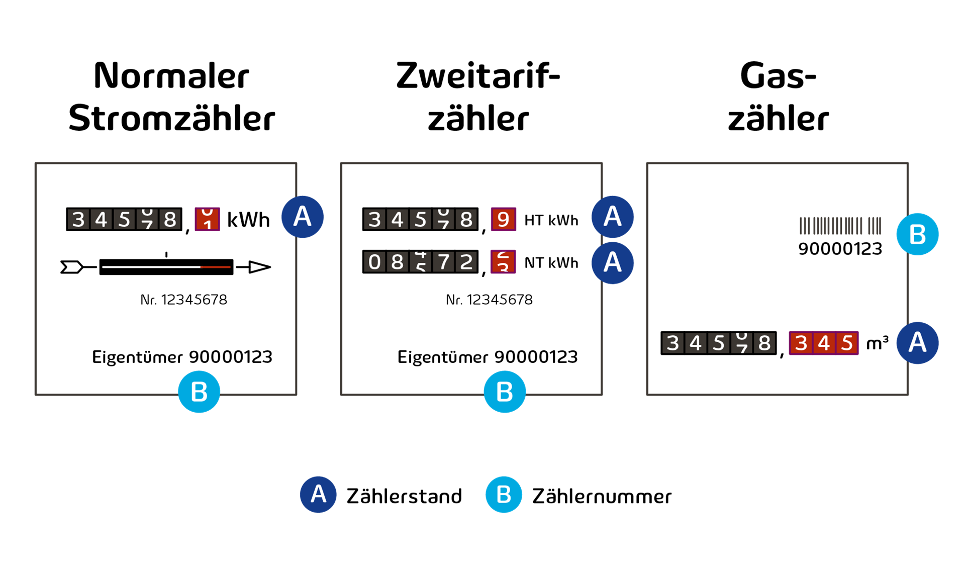 - die Zählernummer ist auf das Gehäuse des Zählers aufgedruckt